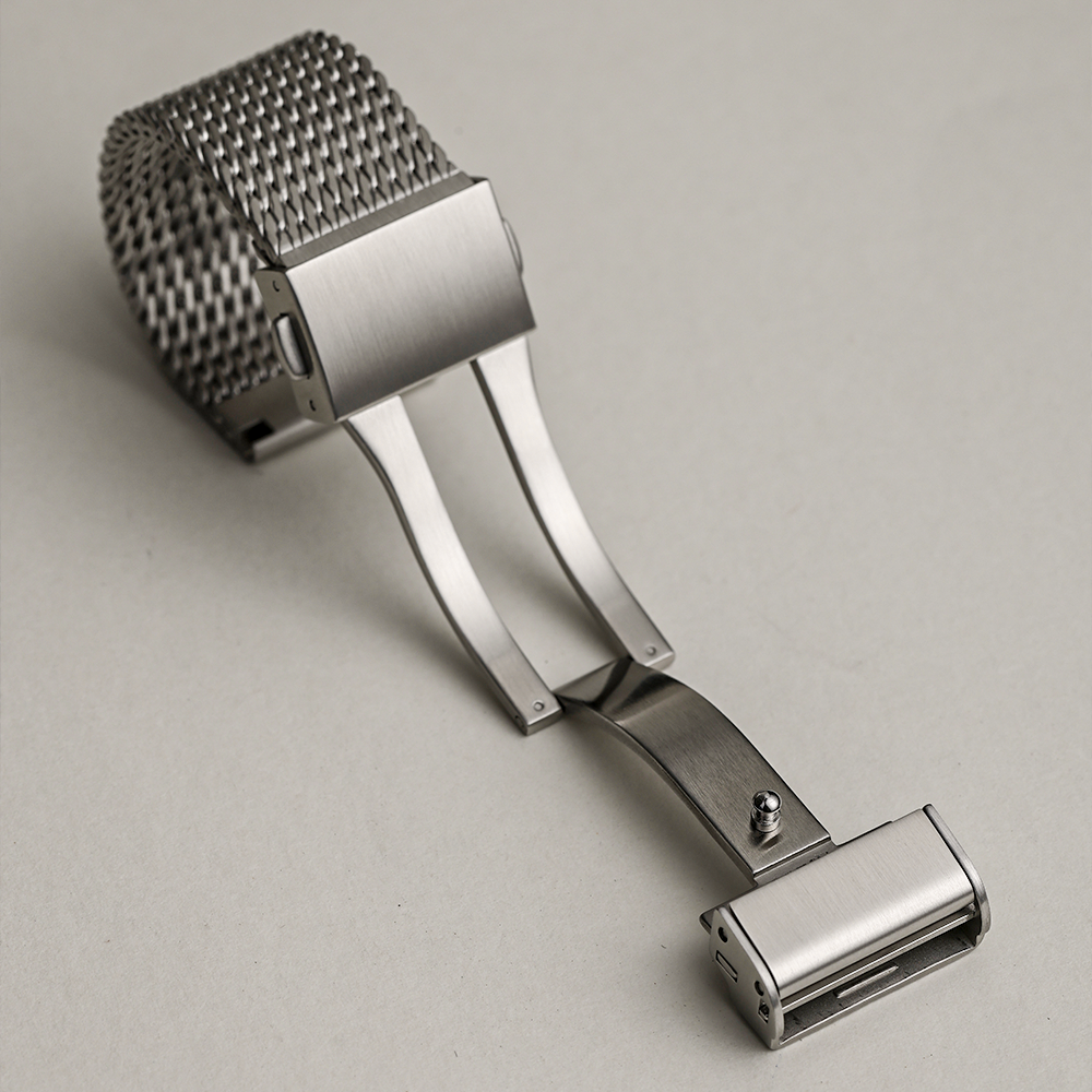 This could be improved for convenience and my preference for a polished version. However, it deserves 5 stars for the quality. Extremely well put together, the mesh is nice and thick, and the clasp system is the ideal one for these mesh type bracelets that allows for quick toolless micro adjusts to lengthen or shorten depending on wrist size, while also being solid and sturdy so you don’t have to worry about the clasp coming undone unintentionally. Two things: 1) It would be way better with quick release spring bars. When I was installing the bracelet on my watch I lost one of the spring bars after it launched into space 2) I’d much prefer a polished version. Usually the types of watches you’d wear with a mesh look better with polished bracelets since they’re not usually tool watches. IMO anyway. But for the quality of the mesh they used and because they used my favorite type of clasp, especially because these are impossible to find for 24 mm lug widths, I have to give it a 5.