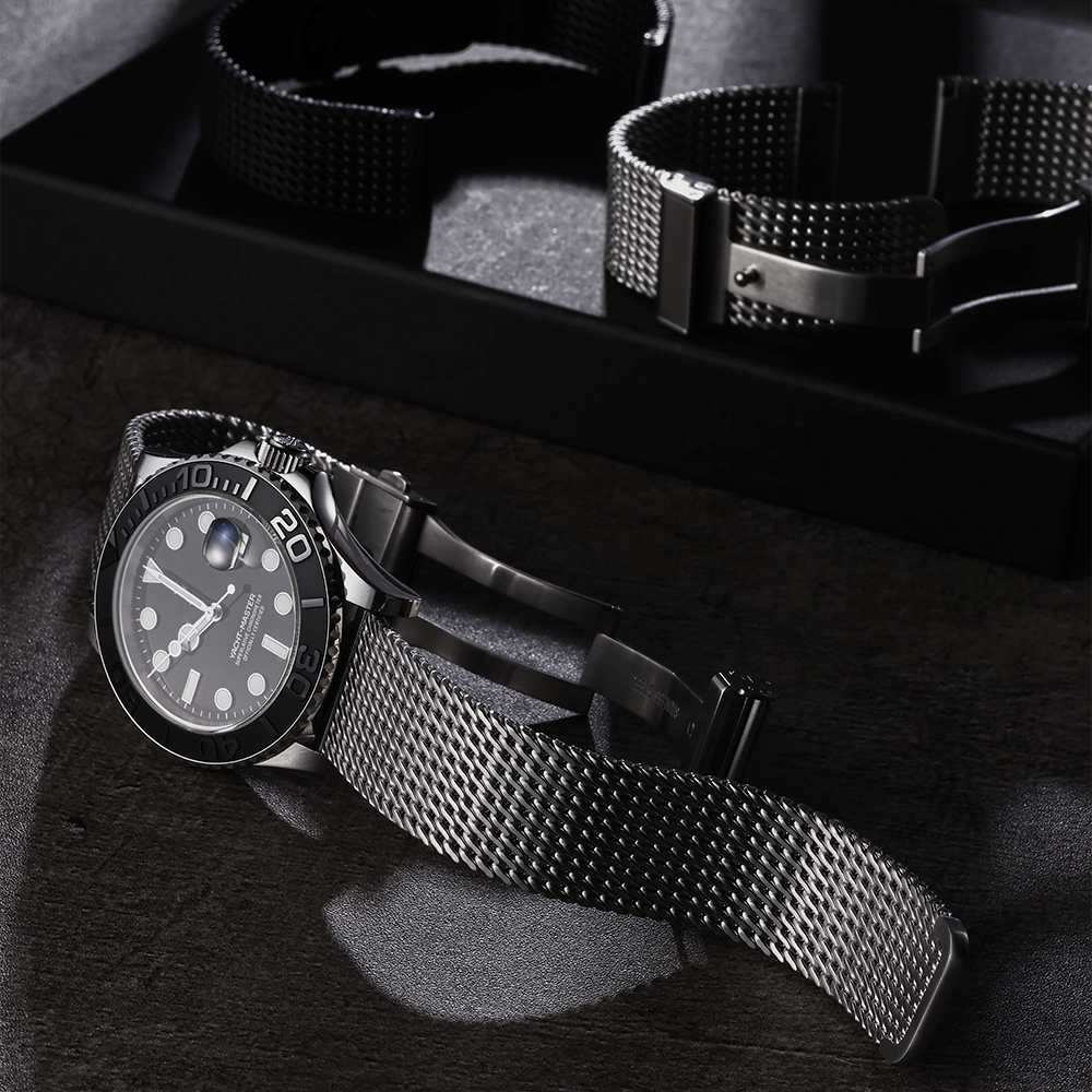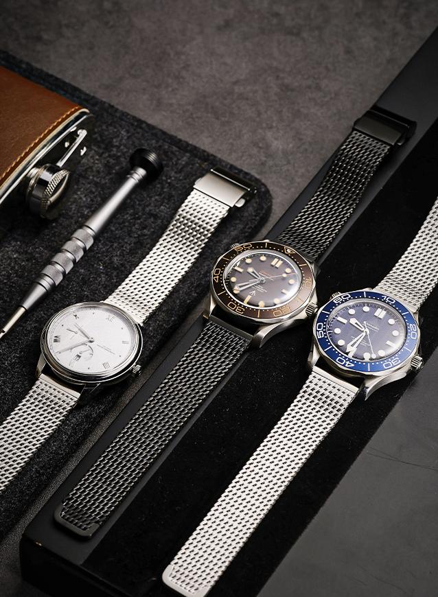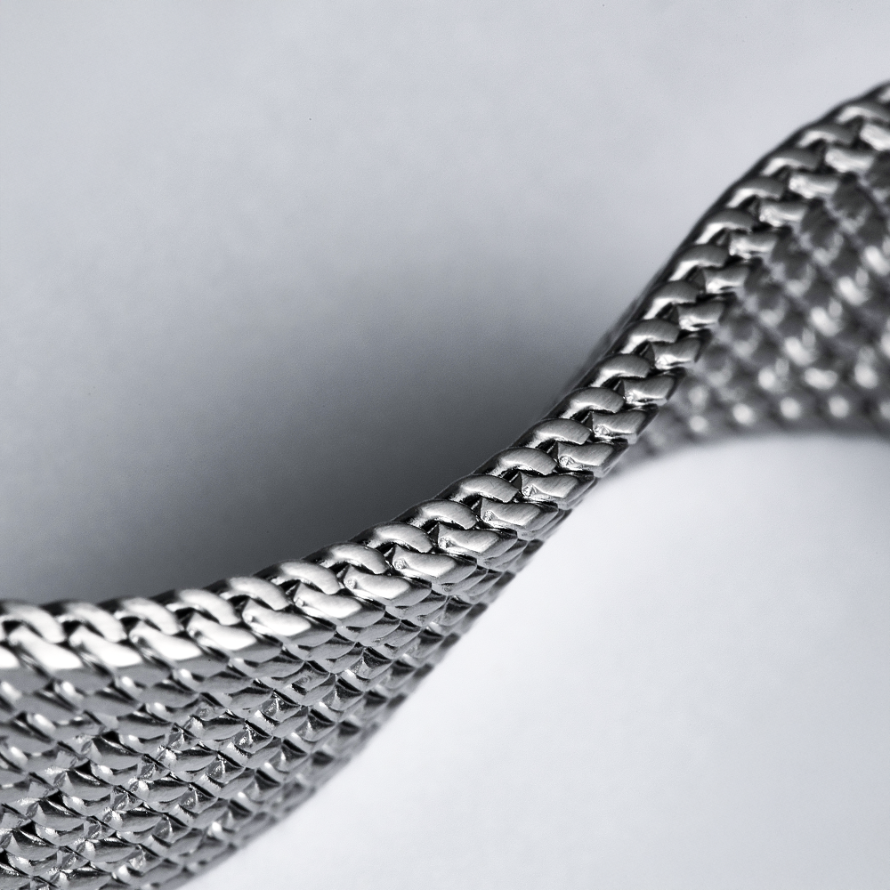 • Classic Milanese Mesh – Finely woven steel mesh offers timeless elegance, flexibility, and a comfortable fit.