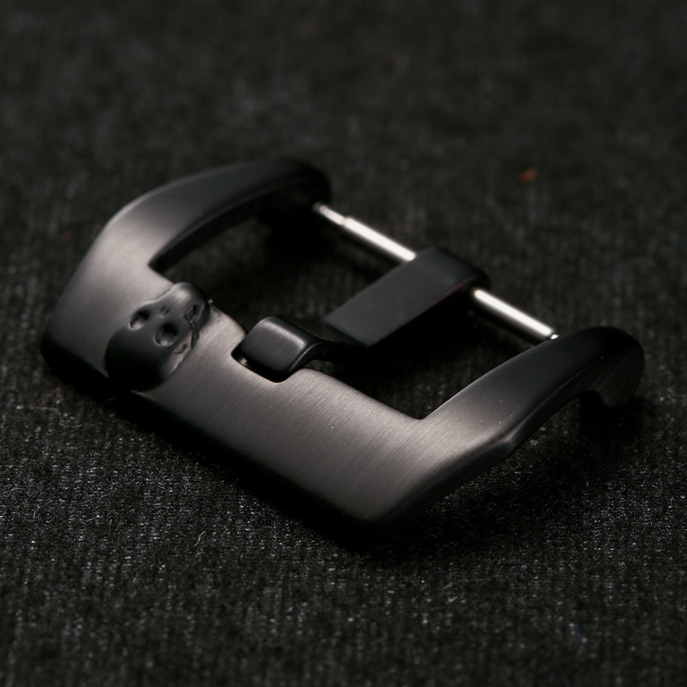 Black 316L Stainless Steel Trapezoid Pre-V Style Watch Buckle with Gothic Skull Relief | Matte Brushed Finish