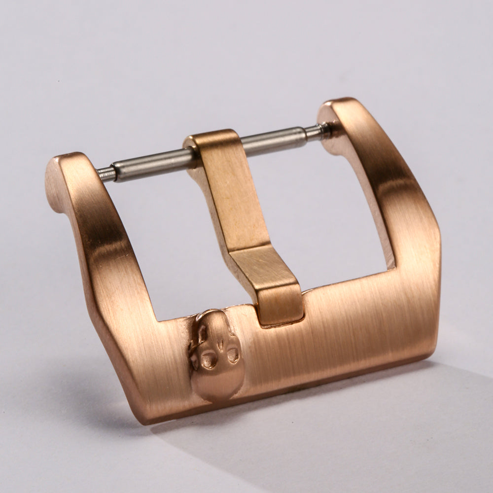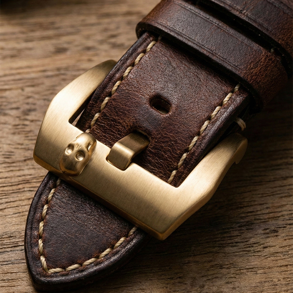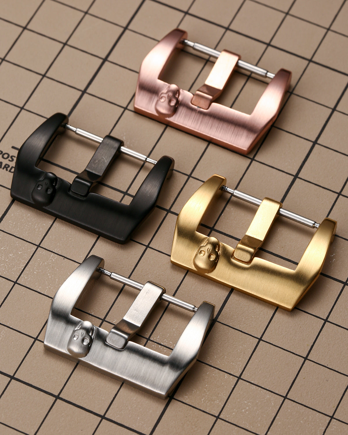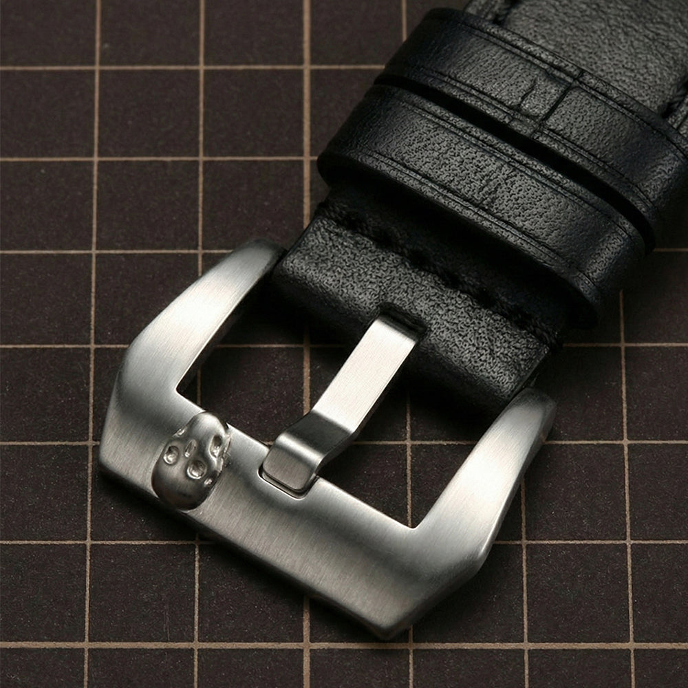 Command attention with this unique fusion of classic robust design and rebellious style. Building upon the iconic chassis of our Large Trapezoid Pre-V buckle, this edition is distinguished by a highly detailed, raised 3D gothic skull relief carved prominently onto the top frame. Machined from heavy-duty 316L stainless steel with a rugged matte brushed finish, it is the ultimate statement accessory for oversized watches and thick leather straps.