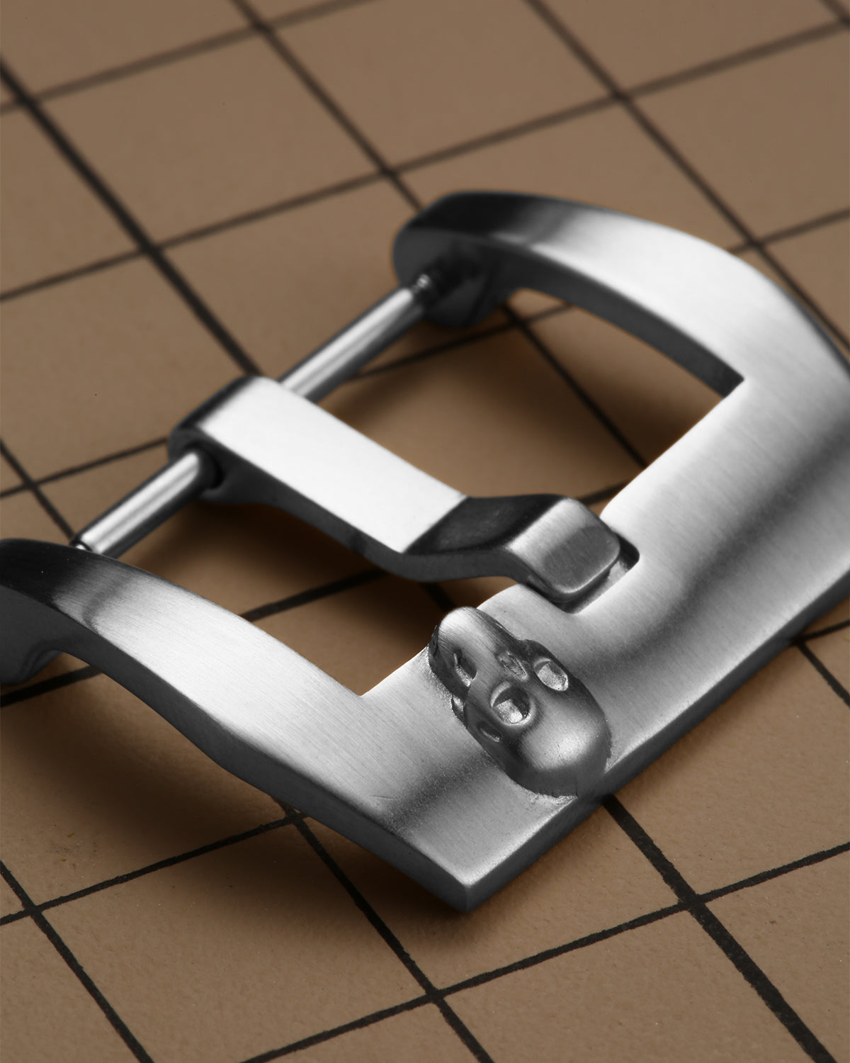Command attention with this unique fusion of classic robust design and rebellious style. Building upon the iconic chassis of our Large Trapezoid Pre-V buckle, this edition is distinguished by a highly detailed, raised 3D gothic skull relief carved prominently onto the top frame. Machined from heavy-duty 316L stainless steel with a rugged matte brushed finish, it is the ultimate statement accessory for oversized watches and thick leather straps.